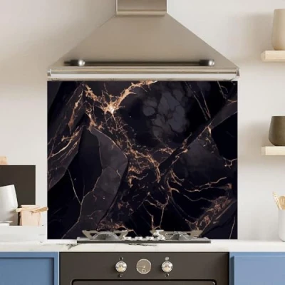 Toughened 6mm Glass Kitchen Splashback 90 x 65cm Dark Marble - Polished Edge Heat Resistant Back Splash for Cookers Hob