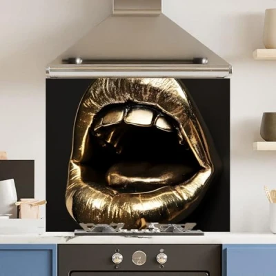 Toughened 6mm Glass Kitchen Splashback 90 x 65cm Gold Mouth Polished Edge Heat Resistant Back Splash for Cookers Hob
