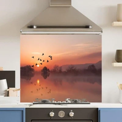 Toughened 6mm Glass Kitchen Splashback 90 x 65cm Misty Morning Polished Edge Heat Resistant Back Splash for Cookers Hob