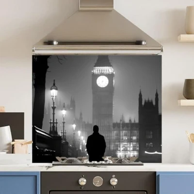 Toughened 6mm Glass Kitchen Splashback 90 x 65cm Monochrome BigBen Polished Heat Resistant Back Splash for Cookers Hob