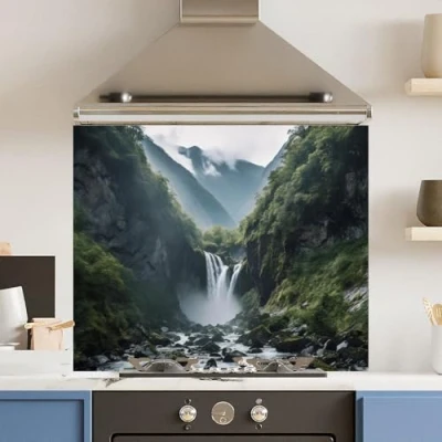 Toughened 6mm Glass Kitchen Splashback 90 x 65cm Waterfall Landscape Polished Heat Resistant Back Splash for Cookers Hob