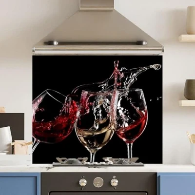Toughened 6mm Glass Kitchen Splashback 90 x 75cm 3 Wine Glasses Polished Edge Heat Resistant Back Splash for Cookers Hob