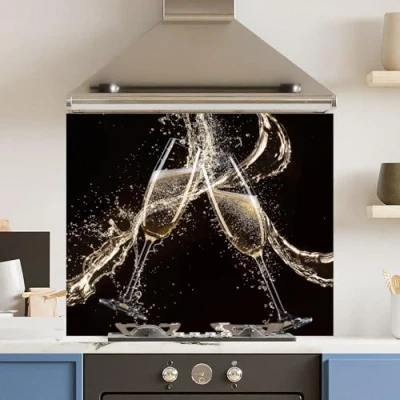 Toughened 6mm Glass Kitchen Splashback 90 x 75cm Champagne Flute Splash Polished Heat Resistant Back Splash for Cookers Hob