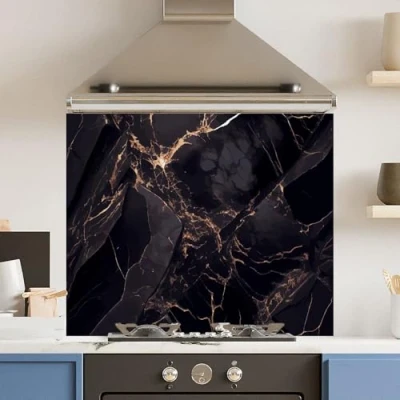 Toughened 6mm Glass Kitchen Splashback 90 x 75cm Dark Marble Polished Edge Heat Resistant Back Splash for Cookers Hob