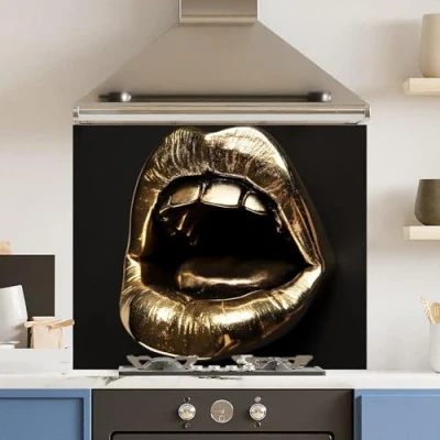 Toughened 6mm Glass Kitchen Splashback 90 x 75cm Gold Mouth - Polished Edge Heat Resistant Back Splash for Cookers Hob