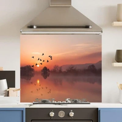 Toughened 6mm Glass Kitchen Splashback 90 x 75cm Misty Morning Polished Edge Heat Resistant Back Splash for Cookers Hob
