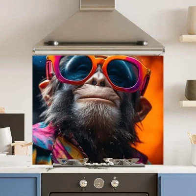 Toughened 6mm Glass Kitchen Splashback 90 x 75cm Monkey Glasses - Polished Edge Heat Resistant Back Splash for Cookers Hob