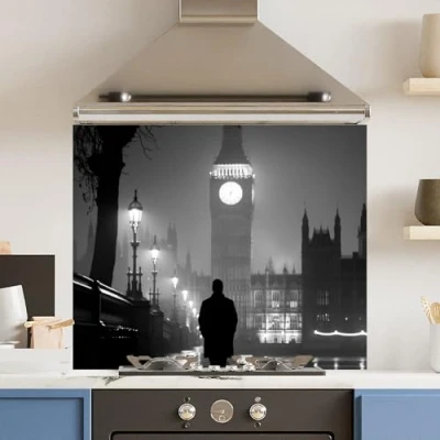 Toughened 6mm Glass Kitchen Splashback 90 x 75cm Monochrome BigBen Polished Heat Resistant Back Splash for Cookers Hob