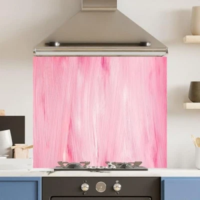 Toughened 6mm Glass Kitchen Splashback 90 x 75cm Pink Brush Stroke Polished Heat Resistant Back Splash for Cookers Hob