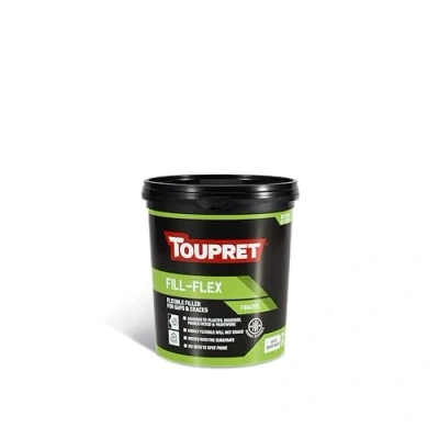General description TOUPRET® Fill-Flex is a highly flexible, ready-mixed filler supplied in a convenient tub. It is designed for filling gaps and cracks, making it ideal for skirting, architraves, and staircases where movement may occur. Its unique formula allows it to move with the substrate, preventing cracks and ensuring durability. Suitable for both internal and external use, Fill-Flex adheres well to paintwork without the need for spot priming. Technical specifications Colour: White Type: Ready-Mixed Maximum Application Thickness: Up to 1 cm Adhesion Strength: > 0.8 Mpa (EN 16-566) Indoor Air Quality Classification: Rated A+ Ready to Paint Time: 24 to 48 hours Recommended Temperature for Application: 5°C to 35°C Relative Humidity for Application: Below 80% Coverage: Varies based on application thickness Guarantee: 12 months from the date of purchase when stored properly Compatibility and accessories Fill-Flex can be used on a variety of surfaces including gypsum plaster,