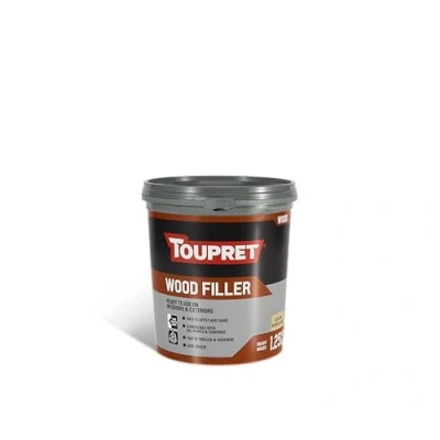 General description TOUPRET Wood Filler is a ready-to-use solution designed for filling and repairing holes, gaps, and cracks in wood. It is suitable for both internal and external applications, can be stained or painted with any conventional paint, varnish, or stain after 24 hours, and features a low odour for user comfort. This versatile filler can be used on all types of wood, including exotic species, chipboard, and plywood. Technical specifications MPN: TOUTTRPBO125 EAN: 3178310018897 Colour: Natural Wood Size: 1.25kg (1250g) Features: Suitable for both interior and exterior use Maximum Application Thickness: Up to 1 cm Working Time: Unlimited working time Ready to Paint Time: 12 to 24 hours Recommended Temperature for Application: Between 5°C and 35°C Recommended Humidity for Application: Below 80% Adhesion: Strong adhesion (NFT 30-608): > 0.8 Mpa Installation Easy manual application using a filling knife, trowel, or blade. Reapply as soon as the filler is dry. Usage Can be