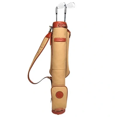 The golf carry bag made of high quality waterproof canvas and leather. Padded shoulder strap for extra comfort and a convenient handle on the side to quickly pick up and go Pockets for balls, tees, divot tools, or whatever else you may need during your round Heavily Padded on Top to Protect Club Heads Dimsion: 33.07" X 7.48" X 4.72" Weight:1.27kg