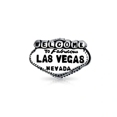 Tourism Landmark Sign Nevada Vacation Travel Welcome To Las Vegas Charm Bead For Women Oxidized .925 Sterling Silver Fits European Bracelet