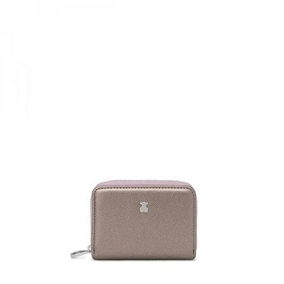 Tous Medium handbag from the New Dubai Saffiano collection made of Saffiano faux leather in silver, mauve and beige. It is closed with a zip. The inside has 2 coin slots and 2 card slots. Measures 8cm high x 11cm wide x 3cm deep