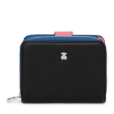 Small wallet from the TOUS New Dubai collection made of polyurethane with a saffiano finish in black and blue. Button and zip closure. Two main compartments: one with zip and one for cards. Dimensions: 12 x 10 x 3 cm
