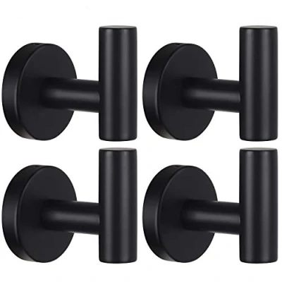 Towel Hooks Bathroom Coat Hook Robe Stainless Steel Heavy Duty Door Hanger Clothes Cabinet Closet Sponges Wall for Bedroom Kitchen Hotel Pool 4 Packs Matte Black