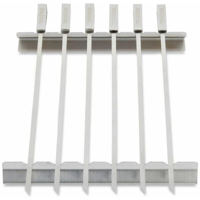 ManoManoServe deliciously grilled meat and vegetable skewers straight to the table with the 6 Piece Skewer Set Stand from Tower. Each skewer features a strong and durable design to easily hold your favourite meats and veggies, with individual handles to turn whilst cooking to ensure your food is cooked thoroughly. Crafted from durable, high quality stainless steel with sharp edges, the skewers slide through food easily for simple and efficient food prep. The set is collapsible for compact and easy storage, so you can keep in the drawer or cupboard when not in use. Hand wash is recommended to keep skewers and stand at their best.