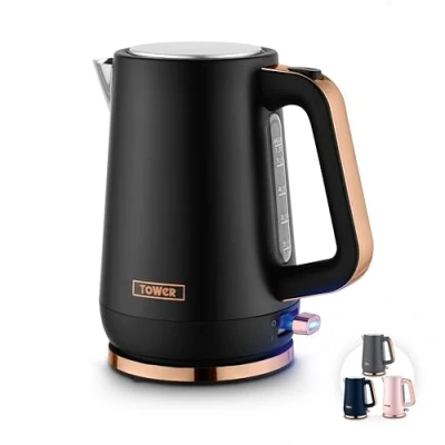 Tower Cavaletto 1.7L Jug Kettle with 3KW Rapid Boil, 360 Swivel Base, Removable Filter, Water Gauge, Stainless Steel Body, Illuminated Switch, Rose Gold & Black, T10100RG