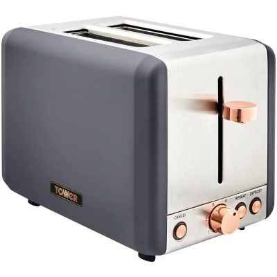 The Tower Cavaletto T20036RGG 2-Slice Toaster combines functionality with a stylish design, making it an essential addition to any modern kitchen. Featuring a contemporary matte grey finish complemented by elegant rose gold accents, this toaster not only toasts bread but also enhances the aesthetic of your countertop.