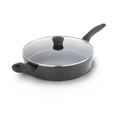 Electrical WorldCook deliciously sizzling fajitas and flavoursome stir-fry dishes with the Diamo 30cm Multi-Pan. Featuring high-grade non-stick technology, the Black Diamond ceramic coating is 7x stronger than other non-stick coatings, and is PFAS, PFOA, PTFE, lead and cadmium-free so you can enjoy healthy meals using little or no oil. Its high quality, long-lasting forged aluminium body enables quick and easy adjustment of temperatures for more efficient cooking results, with no hot spots. The multi-pan has a softtex handle for comfortable control over your cooking, with a tempered glass lid that helps lock in and add extra flavour to your dishes. Its bonded steel base provides even heat distribution to ensure your food is cooked thoroughly, and is designed to work with any hob type including induction. The non-stick ceramic coating prevents food from sticking to the surface, and this multi-pan is dishwasher safe for an even easier clean after cooking.Product SpecificationMade from durable 3.2mm thick aluminiumBlack Diamond coated non-stick interior7 times stronger than standard non-stickUnique stylish diamond patterned exteriorRobust ergonomic handles with soft touchTempered glass lid with steam release ventBonded steel base for even heat distributionOven safe up to 170 degrees for up to 40 minutesDishwasher suitable, Hand wash recommendedItem Height: 12.20cmItem Length: 35.60cmItem Width: 58.00cmStandard Warranty: 1Standard Warranty Extension: 9Technical Specification:Colour: Black Product Type: Multi-PanDimensions: Length: 356mm x Height: 122mmWarranty: 1 Year