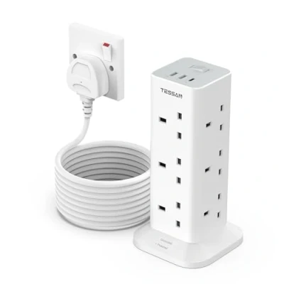 15 in 1 Plug Extension Tower: This 12 way multiple plug tower with 3 USB slots can charge up to 15 devices simultaneously without blocking each other, meet various charging needs for different devices Extension Lead 5M: TESSAN extension lead with usb slots can be more flexibile to reach distant outlets and hard-to-reach places; You can use it in any indoor place such as home, office and dorm room Plug Tower with USB C: The extension leads is equipped with USB A and USB C ports; the USB C output is 15W Max and the USB A output is 12W Max, reducing waiting time; the socket extensions is suitable for charging phones, tablets, etc Surge Protected Extension Lead: The power surge protector with 900J protects electronices from power surge attacks that might be caused by lighting or storm; A master switch controls all your electronics, which can turn off when not in use to save energy Space Saving Design: 4-side compact design tower power strip takes up little space on your desk, keeping your desk organized and tidy; 4 Non-Slip Mats at the bottom are in order to avoid slipping and sliding when using, Manufacturer: Zhuhai Tessan Power Technology Co., Ltd.