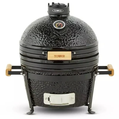3 – 5 people, Ø 33 cm, 48 x 54 x 49 cm, Black Tower Kamado Maxi. Type: Barbecue, Heat source: Charcoal (fuel), Number of cooking zones: 1 zone(s). Form factor: Barrel, Top surface type: Grate, Product colour: Black. Number of legs: 3 leg(s), Legs material: Steel. Width: 480 mm, Depth: 540 mm, Height: 490 mm T978531 Kamado Maxi Ceramic Charcoal BBQ Charcoal fuelled BBQ will give an authentic BBQ taste to all your favourite dishes Multi-functional: For added versatility in cooking for a wide range of ingredients, you are able to grill, smoke, bake and sear all in this stylish BBQ. Create deliciously charred meals for the family and guests. Ceramic body: Providing excellent heat retention, the BBQ brings tasty and charred meals that’s produced rapidly while all cooked evenly. It’s also highly durable, meaning it will withstand wear and tear for long-lasting use. Large cooking surface: Grilling surface measures at 13” / 23.5cm to cater for 3 – 5 people, suitable for family BBQ’s and even entertaining guests. Temperature control: For consistent and precise results every time with enhanced charcoal taste, the insulated seal locks in air tightly to retain natural moisture and flavourings, while the air vent grants complete control over its temperature which is easy to monitor via the built-in thermometer. Egg shape design: Boasting a stylish glass black ceramic coating designed in a funky egg shape, this Kamado Maxi BBQ elevates style in any garden. Foldable shelves & 360° wheels: Complete with foldable side shelves that offers extra storage and preparation space, you can easily maneuver the BBQ around your garden due to its stainless steel frame with 360° wheels. Wooden handles & lid dampener: The BBQ is fitted with wooden handles that remain cool to the touch for added safety during cooking. The lid will be gently closed due to the intuitive lid damper being cushioned, preventing damage. Weatherproof cover: Includes a waterproof protective cover to keep your BBQ at its best, protecting it from weathers all year round. Kamado collection: Boasting a contemporary design and durable ceramic body, choose between the Kamado Maxi or XL to suit your BBQ demands. A brand you can trust: Tower is an iconic British brand boasting over 100 years of quality in manufacturing and design excellence. Tower is the UK’s fastest growing SDA & Housewares brand loved by millions of households. Tower’s Kamado Maxi Ceramic Charcoal BBQ provides ultimate charcoal tasting foods that all the family and guests will enjoy. Its modern, embossed design will look fantastic in any garden, with a grilling surface measuring at 23.5cm to cater for 3 – 5 people, allowing you to create juicy burgers, charred halloumi skewers and succulent steaks for family or guests to enjoy. The ceramic body with powder coated steel frame offers fantastic heat retention, ensuring all your BBQ favourites are cooked thoroughly with an authentic charcoal taste while the insulated lid seal locks in air tightly to retain natural moistures and flavours. Versatile by design, you cook a whole range of ingredients by grilling, smoking, baking and searing, with a built-in thermometer, ensuring meals are cooked at the correct temperature. Preventing any accidents, the BBQ comes complete with integrated wooden handles, remaining cool to the touch for safe opening and closing of the lid. 5 Year Performance Number of persons 3 person(s) Thermometer Yes Cooking surface diameter 33 cm Number of plates/racks 1 Number of cooking zones 1 zone(s) Adjustable thermostat No Heat source Charcoal (fuel) Type Barbecue Design Built-in display No Housing material Ceramic Housing coating Enamel Cooking surface shape Round Product colour Black Lid features Hinged lid Lid Yes Top surface type Grate Form factor Barrel Ergonomics Cool touch handle(s) Yes Handle(s) Yes Legs material Steel Number of legs 3 leg(s) Legs Yes Castor wheels No Weight & dimensions Height 490 mm Depth 540 mm Width 480 mm
