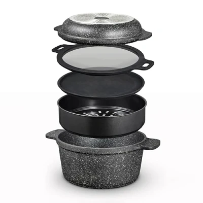 MULTI-FUNCTIONAL SET: Versatile casserole for slow-cooked meats, one-pot stews, poaching or roasting whilst the domed lid locks in moisture for more flavoursome meals. Includes a silicone-edged glass lid, domed aluminium lid (shallow hob dish), steaming tray & silicone trivet BLACK DIAMOND NON-STICK COATING: This casserole dish features our superior Black Diamond non-stick coating that is 7x stronger than standard coatings. The infused, dual-layer coating requires little to no oil, with Nano-Crate Technology for even oil coverage letting you cook healthier low-fat meals QUALITY CAST ALUMINIUM: Crafted from high-quality, lightweight cast aluminium and 60% lighter than cast iron for less strain and better manoeuvrability. It is also safe to use metal utensils without damaging the non-stick coating DISHWASHER SAFE: Simply pop the casserole pot, lids and steaming tray into the dishwasher for an easy clean. Also safe to use in the fridge or freezer for added convenience 25 YEAR GUARANTEE: Trusted Tower quality with a standard 1 year guarantee and 24 year extension, subject to product registration online., Weight: 4.2549216566 Pounds, Manufacturer: Tower