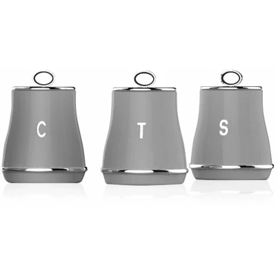 TOWER Renaissance Grey Tea, Coffee & Sugar Storage Canisters T826176GRY. Matching Set of 3 Kitchen in