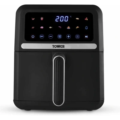 Tower T17186 Vortx Digital Air Fryer with Colour Display, 11 Pre set Cooking Options, Space Saving Design, 1500W, 5L, Black