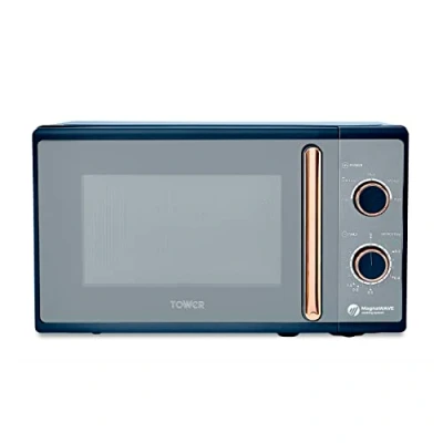 JoybuyTOWER Cavaletto Manual Microwave - Midnight Blue&Rose Gold, 20L, 800W This stylish 20L microwave features MagnaWave technology for even cooking, 5 power levels, a 35-minute timer, easy manual controls, and a wipe-clean design—perfect for fast, fuss-free family meals, reheating, and defrosting.