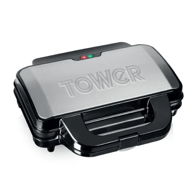 The Tower Deep Fill Sandwich Maker T27013 (Silver and Black, 900W) features extra deep non-stick plates for generously filled sandwiches, fast and even cooking with automatic temperature control, and safety elements like a cool touch handle and non-slip feet—ideal for convenient everyday use.