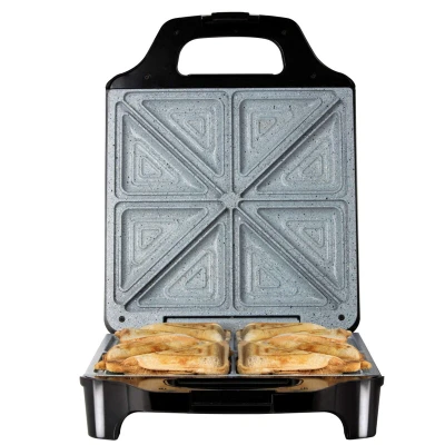 Tower T27021 4 Slice Deep Fill Sandwich Maker with Easy Clean, Non Stick Plates, Automatic Temperature Control, Cool Touch Handle, 1600 W, Black