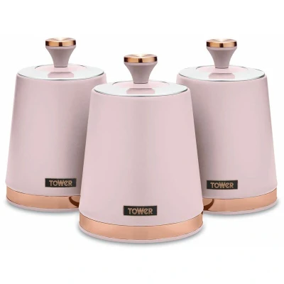 Lock in the freshness of your favourite hot beverages with Tower's tasteful set of three Cavaletto canisters, providing an ideal home for your coffee, tea and sugar besides your kettle. The steel framework enhances its durability, keeping your products at quality standards. Each of the containers has a 1.3 litre capacity to store your loose ingredients in a tidy manner, preventing cluttered kitchens. With the removable airtight lids, your favourite ingredients will be kept fresh for longer and makes it easy to replenish them. The contemporary style emphasises sleek flair with its tasteful matte marshmallow pink finish with rose gold accents. Complete the set with the Cavaletto collection to add freshness to your kitchen.