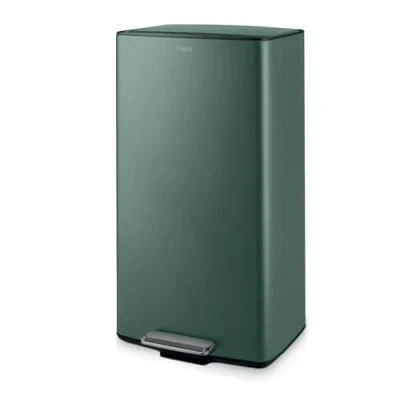 Tower T838020FOR 40L Rectangular Pedal Bin, Made from Strong & Durable Carbon Steel, Inner Bucket, Filter Compartment, Forest Green