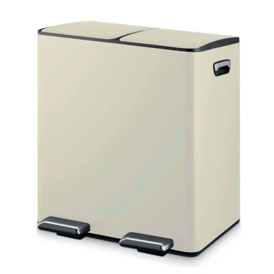 JoybuyThe Tower Recycling Pedal Pin with Two Compartments 40L in Cream features a durable carbon steel build with two 20L compartments for easy waste separation, hands-free pedal operation, removable inner buckets, and a stylish powder-coated finish—perfect for organized, hygienic waste management in any modern kitchen.