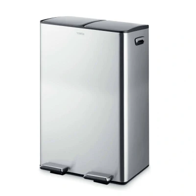 The Tower Recycling Pedal Pin with Two Compartments 60L is a sleek, satin-coated stainless steel bin featuring dual 30L compartments and hands-free pedal operation for hygienic recycling and waste separation, with removable inner buckets and a fingerprint-resistant finish for easy maintenance in any kitchen.