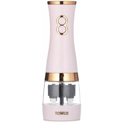 Tower T847004PNK Electric Salt and Pepper Mills, Battery Operated with Adjustable Ceramic Grinders, Pink Rose Gold