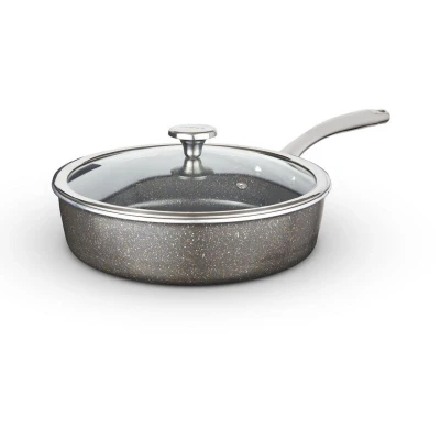 General description This 28cm multi-pan is designed for family meals and entertaining, featuring a tempered glass lid that helps retain moisture and nutrients, making it perfect for sizzling fajitas and flavorful stir-fry dishes. The Cerastone Pro non-stick coating is 15 times stronger than standard coatings, ensuring superior food release and easy cleaning with every use. Technical specifications Diameter: 28 cm Material: Forged aluminium Base: Inducto bonded steel Construction: 4mm heavy gauge Non-stick coating: Cerastone Pro, PFOA, PTFE, PFAS, lead and cadmium-free Compatibility and accessories Compatible with all hob types, including induction Usage Little to no oil is required for healthier, virtually fat-free cooking Safe for use with metal utensils without risk of scratching Dishwasher safe for easy cleaning Other information 25-year guarantee: 1 year standard guarantee with an optional 24-year extension upon product registration