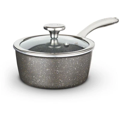 Tower T900216 Cerastone Pro 20cm Forged Aluminium Saucepan with Tempered Glass Lid, Non Stick Coating, Graphite
