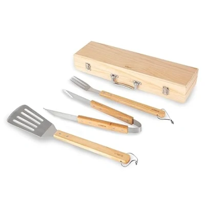 The set includes a spatula, fork, and tongs, each designed with smooth wooden handles for an improved grip and increased comfort while cooking. These ergonomically shaped handles provide you with better control when handling hot food, making it easier to flip burgers, skewer meat, or serve up delicious grilled vegetables.