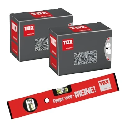 The Spiral Plus plasterboard dowel is ideal for use in single and two-layer plasterboard and plasterboard and provides reliable and effective attachment in these Metal dowel with pronounced external thread and high load capacity of up to 20 kg per attachment point in plaster fibreboard Wall plugs for plasterboard with flush wall finish and good suitability for double-planked plasterboard for quick and easy installation without pre-drilling Box contents: 1x TOX set Spiral Plus in the corrugated box, 25x dowels + screw SK, 25x dowels + screw FK in small boxes + 1x 30 cm spirit level (made of aluminium) with print, 068909010, Manufacturer: TOX