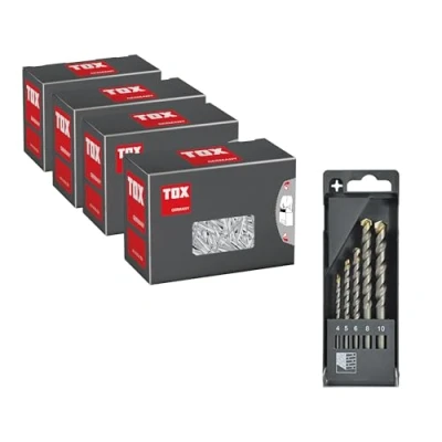 Reliable attachment in almost all building materials: the Trika all-purpose dowel holds securely in concrete, solid stone, aerated concrete, plasterboard and many other materials Easy to install: easy pre-installation thanks to triple divided dowel body and dowel cap, which protects the surface and prevents slipping into the drill hole High load capacity and easy installation: the all-purpose dowel provides a secure hold for hand and DIY enthusiasts - twist locks prevent turning and allow quick screwing of the screw Box contents: 1x TOX set TRIKA in a box, 25x dowels 5/31 + 6/36, 15x dowels 8/51, 8x dowels 10/61 + screws in small boxes + 1x masonry drill set, 011909042, Manufacturer: TOX
