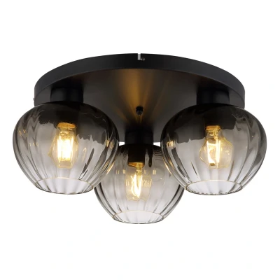 Toy Globe Ceiling Light Matt Black Smoke Glass Shade 3x E27