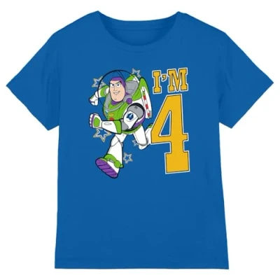 Toy Story Boys Birthday Buzz I'm 4 Unisex Kids T Shirt, Royal, 3 Years UK