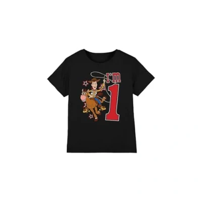 Toy Story Boys Birthday Woody I'm 1 Unisex Kids T Shirt, Black, 5 6 Years UK