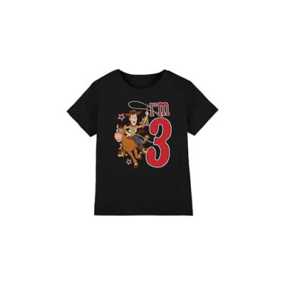 Toy Story Boys Birthday Woody I'm 3 Unisex Kids T Shirt, Black, 5 6 Years UK