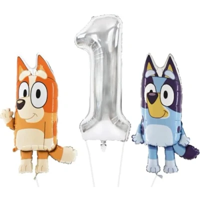 Celebrate your little ones birthday with their favourite tv characters with this amazing bluey and bingo balloon pack! You will receive 1 x 32" bluey, 1 x 32" bingo & 1 x 40" number balloon. Numbers 1-8 in rose gold or blue available (please refer to picture & title). Please note that these balloons will come flat and not inflated, you must inflate these balloons yourself. Each balloon has an automatic sealing valve. They can be filled with air so they can be fixed to the wall or can be filled with helium so that they float.