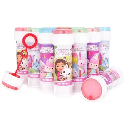 Toyland® Pack of 12 Gabby's Dollhouse Bubbles With Wands, 60ml Solution & Novelty Maze Lid Pocket Money Party Bag Toys