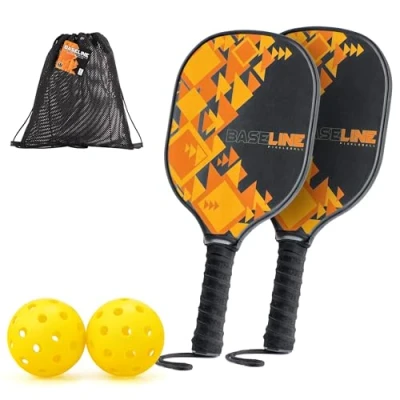 Toyrific Baseline Orange Pickleball Set, Wooden Bats, 2 Paddles with Balls, Indoor & Outdoor Use