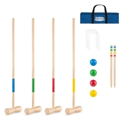 Toyrific Grasshopper Games Wooden Croquet Set, 4 Mallets with Balls, Complete Set for Kids and Adults, Outdoor Family Garden Game